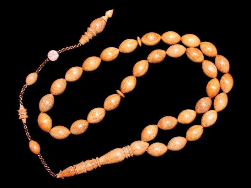 Kördiken ağacının özünden imal edilmiştir. Kördiken ağacı gergedan ağacının yapısı ve özelliklerine benzerliği ile bilinir. Dokusu sık ve özkütlesi ağırdır. Ağacın dokusunda yansılı bir fosfor görünümü mevcuttur. Kördiken tesbihi zamanla vişne rengine dönüşüm sağlar.
